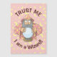 Um velho feiticeiro com capa rosa olhando para a bola mágica de cristal.