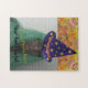 Divirta-se no Dia das Bruxas com estas quebra-cabeça personalizadas. Imagine você mesmo ou um amigo vestindo esse chapéu de mago estrelado. Basta carregar uma foto que você armazenou no seu computador. Se precisar alterar o tamanho ou a posição, clique em Personalizar. O texto é facilmente alterado no formulário de modelo fornecido. Se o retrato que você carrega é um recorte, então o fundo abstrato laranja e verde aparecerá atrás da cabeça. Obrigado por comprar em CherylsArt no Zazzle.