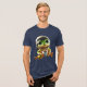 Whimsical green frog in a space helmet cups steaming coffee, blending cosmic charm with cozy cafe vibes. Bold colors and glossy helmet create playful wearable appeal.