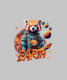 O astronauta do panda vermelho no texto cor de laranja escuro de Marte lê Terra com fundo planetário.