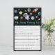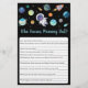 Esses adoráveis que conhecem as melhores cartas de Mamãe são uma atividade de Chá de fraldas divertida. Simplesmente passe-os durante o Chá de fraldas onde os convidados se divertirão a responder a perguntas sobre a mãe a ser! A pessoa com as vitórias mais corretas! O design apresenta um adorável astronauta, foguete e planetas coloridos.
