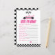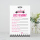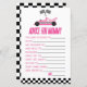 Este é um aviso de carro de corrida cor-de-rosa para a atividade de Chá de fraldas. *Aconselhamento para Mamães - Escreva palavras significativas de conselho para a mãe ser!