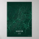 A stunning art print of Austin Map rendered in a vibrant emerald city color palette. Every street, highway, and waterway is mapped in fine detail against a rich emerald background. Perfect as a statement piece for your home, office, or as a gift for any Austinite.