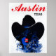 Poster de viagens de estilo Vintage para Austin, Texas. 24 x 32