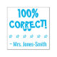 Este design de carimbo positivo apresenta a mensagem encorajadora "100% CORRETO!" e um nome de educador personalizado. Ele também apresenta uma forma decorativa de contorno de estrela. Pode ser usado por um professor ou educador quando marcar tarefas, para reconhecer que o aluno fez um trabalho de excelente.