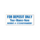 Este simples design de carimbo contém a mensagem "SOMENTE PARA DEPÓSITO", além de um nome pessoal/profissional personalizado e de um número de conta. Pode ser utilizado por um trabalhador religioso ou por um indivíduo para acrescentar de forma eficaz um aval restritivo a um cheque.