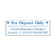 Este respeitável design de carimbo contém a mensagem "Somente para Depósito", além de um nome e número de conta personalizados. Pode ser utilizado por um proprietário de uma pequena empresa, um operador de uma pequena empresa ou um funcionário financeiro para rapidamente acrescentar um endosso restritivo a um cheque.