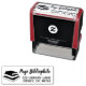 Este carimbo de endereço de retorno personalizado, de autoimpressão, tem um nome de exemplo e endereço de retorno em uma fonte com estilo caligráfico. Há uma imagem de uma pilha de livros à esquerda. — Excelente para amantes de livros, bibliotecários, amantes de livros, bibliotecas e centros de educação, professores, escolas ou qualquer pessoa que ama ler. — Adicione seu nome e endereço na modelo para personalizar. Você pode alterar a fonte, o estilo, o tamanho ou o posicionamento de qualquer coisa. É totalmente personalizável. — Talvez seja necessário ajustar o tamanho das palavras ao ajustado. Clique no botão personalizar ou personalizar. — Você pode também obtê-lo em carimbos regulares e em versões redondas ou circulares. — Use isso em toda a sua correspondência pessoal ou comercial, ou para rotular coisas que você possui. Faz um presente personalizado e prático para um chefe, estudante, colega de trabalho ou amigo. É também um presente adorável de lar ou casamento. — Veja mais designs de selo de borracha no Lápis da Alina.