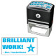 Este design de carimbo motivador apresenta a mensagem de feedback positiva "BRILLIANT WORK!" e um nome de educador personalizado. Ele também apresenta um ícone decorativo em forma de estrela. Pode ser usado por um professor ou educador quando formando o trabalho estudantil, para reconhecer que um aluno fez um trabalho excepcional.