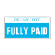 Este design de carimbo simples e básico contém as mensagens "TOTALMENTE PAGO" e uma linha onde pode ser escrita uma data de pagamento. Ele poderia ser usado para marcar uma fatura ou fatura como tendo sido paga no cheio.