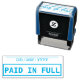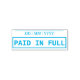 Este simples design de carimbo apresenta as mensagens "PAGO EM CHEIO" e uma linha onde uma data de pagamento pode ser escrita. Pode ser usado para marcar uma fatura ou fatura como tendo sido paga.