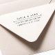 Um carimbo clássico de endereço de retorno de autoimpressão com uma linha elegante que separa o nome do endereço. Mostrado com nomes de casais, fazer perfeito para salvar as datas, o noivado ou o convite de casamento. Todos os tipos são personalizáveis. Use um nome e sobrenome, nome da empresa, nomes de casais ou apenas sobrenome. As opções são intermináveis e inteiramente da sua responsabilidade.