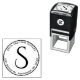 Carimbo de borracha de tinta automática de na moda feito em um estilo circular com uma borda de círculo pontilhada e um endereço de retorno arquivado, e um monograma de letra solteiro no meio. Personalize todos os campos de texto para atender às suas necessidades. Excelente para uso diário e ocasiões especiais.