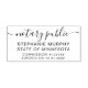 Carimbo simples e moderno para o público notário. Apresenta "notário público" no script e seu nome, estado, número da comissão e data de expiração na tipografia sans-serif clássica.