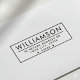 Carimbo de retorno moderno de autocolante Carimbo de retorno de endereço de borda recortada com o apelido/nome da família em caracteres bonitos e modernos e o endereço abaixo em caracteres elegantes sans-serif