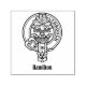 Crachá da crista Clan Hamilton rodeado por uma correia e fivela. Texto personalizado.