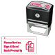 Este design de carimbo de tendência apresenta a mensagem "Please Review, Sign & Send Back Logo" (Revise, assine e envie de volta imediatamente), além de uma linha que uma assinatura ou iniciais poderiam ser escritas acima. Talvez pudesse ser usado por um professor ou por um profissional administrativo para pedir que alguém revisse e reconheça o conteúdo de um documento.