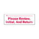 Este design de carimbo moderno contém a mensagem "Please Review, Initial, And Return" (Por favor, reveja, inicialize e devolva) e uma linha que pode ser escrita acima de uma assinatura ou iniciais. Talvez possa ser usado por um educador ou um profissional administrativo para pedir que alguém reveja e reconheça o conteúdo de um documento ou de outra documentação.