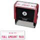 Este design de carimbo básico apresenta as mensagens "MONTANTE DE CHEIO PAGO" e uma linha onde uma data de pagamento pode ser escrita. Talvez possa ser usado para indicar que uma fatura ou fatura foi paga em cheio.