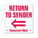 Este design de carimbo apresenta as mensagens "RETORN TO SENDER" e "⬩ Unwant Mail ⬩", juntamente com um símbolo de seta decorativa. Pode ser usado para indicar que o correio recebido foi entregue no endereço errado e deve ser devolvido ao remetente.