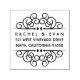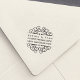 Adicione um encanto estampado à mão a convites, cartões e correspondência com o nosso carimbo de endereço de retorno inspirado no decreto de arte. O design apresenta o seu nome e endereço em tipografia de estilo deco, flanqueada por ilustrações florescentes da safra do ornamentado. Coordena-se com a nossa coleção de convites Deco Flourish.