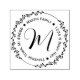 Um carimbo de endereço redondo que tem um design circular com folhas de petite caprichosas em torno do endereço. O nome, o endereço da rua e o código de cidade/estado/zip circundam a letra do monograma do seu sobrenome, no meio do carimbo, num alinhamento circular.