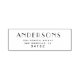 Super elegante em seu minimalismo retorna o carimbo de endereço com nome de família no endereço moderno e retorna em caracteres elegantes. escolha entre diferentes cores e tamanhos para um olhar personalizado