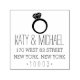 Incorpore as datas, convites para festas de noivado ou anúncios com nosso carimbo de endereço de retorno do anel de noivado de diamante, com seu nome e detalhes de endereço de retorno em uma mistura moderna de estilo manuscrito e letra de bloco, tocada por uma ilustração do anel de diamante.