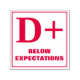 Este carimbo contém a letra "D+" e a expressão "ABAIXO DAS EXPECTATIVAS". Ele poderia ser usado por professores, educadores ou assistentes de ensino ao dar uma nota enquanto marca suas tarefas, testes, projetos, testes, exames, trabalhos e outras obras acadêmicas.
