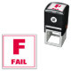 Este carimbo contém a letra "F" e a palavra "FAIL". Ele poderia ser usado por professores, educadores ou assistentes de ensino ao dar uma nota enquanto marca suas tarefas, testes, projetos, testes, exames, trabalhos e outras obras acadêmicas.