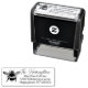 Carimbo de tinta reutilizável para nome e endereço com imagem de abelha. Nomes ou sobrenome no topo estão em escrita cursiva. Inclua o endereço usando até três linhas adicionais de fonte impressa. Mostrado com tinta preta, mas outras cores estão disponíveis, assim como a cor do próprio carimbo. Outros tamanhos podem funcionar, mas não deixe nenhuma palavra chegar perto das bordas.