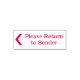 Este design de carimbo contém a mensagem "Please Return to Sender" (Retorne ao remetente), juntamente com uma forma de seta decorativa. Ele pode ser usado para indicar que o correio recebido foi entregue para o endereço errado ou para um destinatário desconhecido e deve ser devolvido ao remetente.