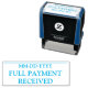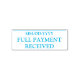 Este design de carimbo mínimo contém as mensagens "PAGAMENTO DE CHEIO RECEBIDO" e uma linha onde é possível escrever uma data de pagamento. Talvez possa ser usado para indicar que uma fatura ou fatura foi paga em cheio.