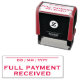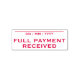 Este design de carimbo simples e básico contém as mensagens "PAGAMENTO DE CHEIO RECEBIDO" e uma linha onde pode ser escrita uma data de pagamento. Talvez possa ser usado para indicar que uma fatura ou fatura foi paga em cheio.