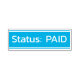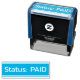 Este design de carimbo contém a mensagem "Status: PAID" (Status: PAGO). Talvez possa ser usado para indicar que uma fatura ou fatura foi paga em cheio.