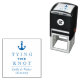 Carimbo de anúncio de casamento náutico com ilustração de âncora e escrita personalizada "casando" com os seus monogramas e data em caracteres elegantes
