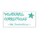 Este design de carimbo encorajador apresenta a inspiradora mensagem de feedback "WONDERFUL CORRECTIONS!" e o nome de um tutor personalizado. Ele também apresenta uma forma decorativa de estrela. Pode ser usado por um professor, educador ou orientador ao marcar trabalhos, para indicar que o aluno fez um trabalho de excelente.
