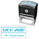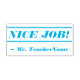 Este design de carimbo inspiracional mostra a mensagem motivadora "NICE JOB!" e um nome de educador personalizado. Ele poderia ser usado por um professor, educador, instrutor ou tutor ao marcar tarefas, para reconhecer que o aluno fez um trabalho de excelente.