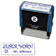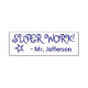 Este design de carimbo motivador apresenta a mensagem encorajadora "SUPER WORK!" e o nome de um educador personalizado. Ele também apresenta uma forma decorativa de contorno de estrela. Pode ser usado por um professor ou educador ao marcar missões, para reconhecer que o aluno fez um trabalho de excelente.