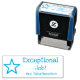 Este inspirador design de carimbo apresenta a mensagem de feedback motivacional "Exceptional Job!" e o nome de um educador personalizado. Ele também apresenta um ícone decorativo em forma de estrela. Ele poderia ser usado por um professor de escola, educador, instrutor ou tutor ao marcar tarefas, para indicar que o aluno fez um trabalho de excelente.