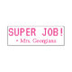 Este design de carimbo positivo apresenta a inspiradora mensagem "SUPER JOB!" e o nome de um educador personalizado. Pode ser usado por um professor, educador ou orientador ao marcar trabalhos, para indicar que o aluno fez bem.