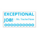 Este design de carimbo divertido apresenta a mensagem motivacional "EMPREGO EXCEPCIONAL!" e o nome de um professor ou educador personalizado. Ele também apresenta uma forma decorativa de estrela. Pode ser usado por um professor, educador ou orientador ao marcar trabalhos, para indicar que o aluno fez um trabalho de excelente.