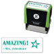 Este design de carimbo inspiracional apresenta a encorajadora mensagem "AMAZING!" e o nome de um tutor personalizado. Ele também apresenta uma forma decorativa de contorno de estrela. Pode ser usado por um professor, educador ou orientador ao marcar trabalhos, para indicar que o aluno fez bem.