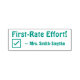 Este design de carimbo divertido apresenta a inspiradora mensagem "Esforço de Primeira Taxa!" e um nome de educador personalizado. Também apresenta uma marca de verificação decorativa. Ele poderia ser usado por um professor, educador ou orientador na marcação de tarefas, para indicar que o aluno fez um trabalho de excelente.