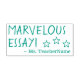Este design de carimbo encorajador apresenta a inspiradora mensagem "MARVELOUS ESSAY!" e o nome de um tutor personalizado. Ele poderia ser usado por um professor, educador, instrutor ou tutor ao marcar tarefas, para reconhecer que o aluno fez bem.