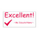 Este design de carimbo motivador apresenta a encorajadora mensagem de feedback "Excelente!" e um nome de professor personalizado. Ele também apresenta um ícone de marca de seleção decorativa. Ele poderia ser usado por um professor, educador ou orientador na marcação de tarefas, para indicar que o aluno fez um trabalho de excelente.