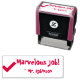 Este design de carimbo inspiracional mostra a mensagem "Trabalho maravilhoso!" e um nome de educador personalizado. Também apresenta uma marca de verificação decorativa. Pode ser usado por um professor ou educador ao marcar missões, para reconhecer que o aluno fez um trabalho de excelente.