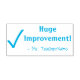 Este design de carimbo encorajador apresenta a mensagem motivadora "Imenso Melhoramento!" e o nome de um professor ou educador personalizado. Também apresenta uma marca de verificação decorativa. Ele poderia ser usado por um professor de escola, educador, instrutor ou tutor ao marcar tarefas, para indicar que um aluno fez bem.