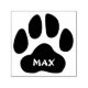 Carimbo personalizado minimalista de impressão de pata com nome próprio. Personalize substituindo o nome de exemplo Max por um nome personalizado ou deixe como se Max fosse significativo para você. Uso em projetos de artesanato, correspondência ou em revistas e outras criações artesanais. Outros usos criativos incluem a assinatura de animais de estimação e um símbolo do selo de aprovação do seu animal de estimação.