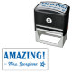 Este design de carimbo divertido apresenta a mensagem encorajadora "AMAZING!" e o nome de um educador personalizado. Ele também apresenta uma forma decorativa de estrela. Poderia ser usado por um professor ou educador ao marcar missões, para reconhecer que o aluno fez bem.